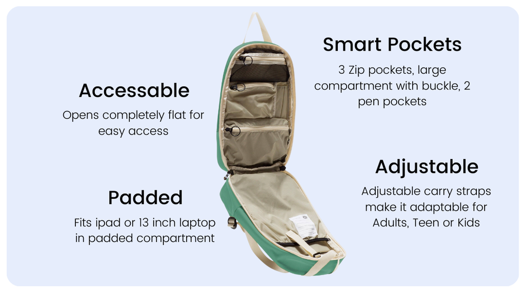 • Opens flat for easy access, organisation, and stress free packing
