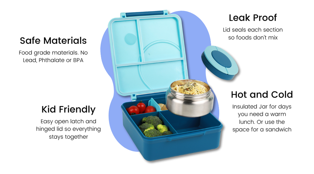 - Mix and Match Fun: Customize your meal with this convertible bento box! Use the removable divider to create 3 or 5 compartments, plus enjoy the included thermos food jar for hot treats.